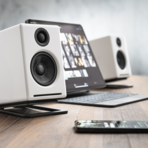 Bamboo serves as more than just a stylish material in Audioengine home music systems. Its unique aesthetic qualities are complemented by functional benefits that enhance the audio experience. The visually striking grain patterns are not merely for show; they’re an indicator of bamboo’s acoustic properties that contribute to a rich, full-bodied sound.